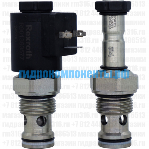 OD150517A000000 24 V DC (R930062338, VEI OD.15.05.17-A-000000, AE16017NC05) Двухлинейный гидравлический клапан (гидроклапан) картриджного (ввертного) исполнения, с электромагнитным управлением, нормально закрытый, тарельчатого типа с пилотным управлением, гнездо 017-E, резьба 3/4" BSP, 70 л/мин, 350 бар, электромагнитная катушка 24 В (DC) R901393577, электрическое подключение DIN 43650 (Bosch Rexroth, Италия). При снятом напряжении OD150517A000000 (R930062338, VEI OD.15.05.17-A-000000, AE16017NC05) блокирует поток из (2) в (1) и пропускает его в обратном направлении из (1) в (2). При подаче напряжения на электромагнитную катушку гидроклапан пропускает поток из (1) в (2) и из (2) в (1).