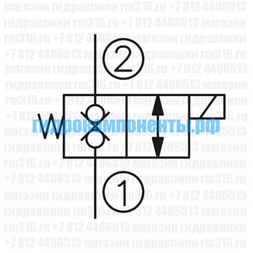 MSV-08-28-N Двухлинейный гидравлический клапан (гидроклапан) картриджного (ввертного) исполнения, с электромагнитным управлением, нормально закрытый, тарельчатого типа прямого действия, гнездо SAE8/2 (SAE 08), резьба 3/4-16 UNF-2A, 19 л/мин, 207 бар (MERIC, Китай). При снятом напряжении MSV-08-28 блокирует поток из (1) в (2) и из (2) в (1). При подаче напряжения на электромагнитную катушку гидроклапан пропускает поток из (1) в (2) и из (2) в (1). Электромагнитные катушки приобретаются отдельно.