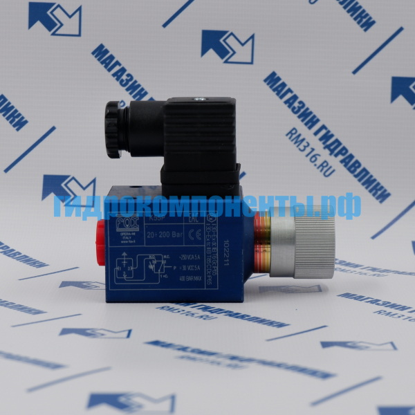 K55P Настраиваемое реле давления, диапазон регулировки 20-200 бар, макс. рабочее давление 400 бар (Fox, Италия). Реле давления — это устройство, которое реагирует на изменение давления в гидросистеме и включает или отключает электрическую цепь при достижении заданного значения.