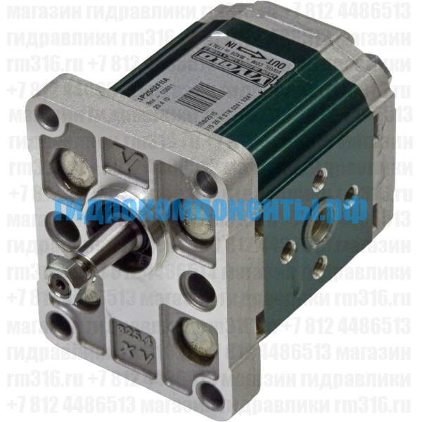 X1P1802FIIA (XV-1P/1.7) Насос шестеренный 1,56 см3 первой группы, конический вал со шпонкой, стандартный (европейский) фланец, правое вращение, порты под фланцы, 250 бар (Vivoil Oleodinamica Vivolo, Италия). С 1985 года итальянская компания Vivoil (которую часто называют Vivolo) производит прочные шестерёнчатые гидромашины внешнего зацепления. Эти агрегаты отличаются гибкостью применения и высокой надёжностью. Выпускается несколько линеек (групп) с разной мощностью, что даёт возможность подобрать оборудование под конкретные нужды. Изделия Vivolo спроектированы для работы под серьёзной нагрузкой и на высоких скоростях. Благодаря грамотной компоновке, итальянскому качеству сборки и существованию как нереверсивных, так и реверсивных модификаций, данные насосы активно используются в мобильной гидравлике, сельхозмашинах, промышленных подъёмниках и смазывающих системах. Также они нередко служат достойной альтернативой продукции таких известных брендов, как Parker или Bosch Rexroth.
