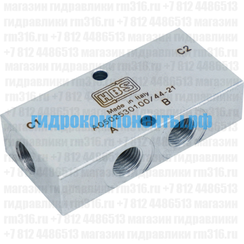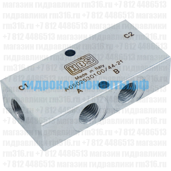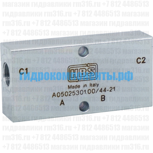 A050253.01.00 Двухсторонний (двухклапанный) гидрозамок используется для удержания гидродвигателей (например, гидроцилиндра или гидромотора) под нагрузкой в статическом положении, пока давление управления (пилотное управление) не откроет запорный элемент. Гидрозамок A050253.01.00 запирает поток рабочей жидкости и обеспечивает надежную фиксацию рабочего органа. Гидравлический клапан (гидроклапан) производства HBS (Италия).