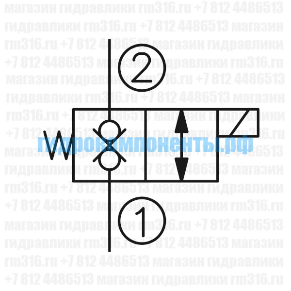 MSV-08-28-N Двухлинейный гидравлический клапан (гидроклапан) картриджного (ввертного) исполнения, с электромагнитным управлением, нормально закрытый, тарельчатого типа прямого действия, гнездо SAE8/2 (SAE 08), резьба 3/4-16 UNF-2A, 19 л/мин, 207 бар (MERIC, Китай). При снятом напряжении MSV-08-28 блокирует поток из (1) в (2) и из (2) в (1). При подаче напряжения на электромагнитную катушку гидроклапан пропускает поток из (1) в (2) и из (2) в (1). Электромагнитные катушки приобретаются отдельно.