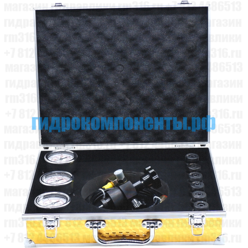 Состав комплекта: чемодан, манометр 0-10 МPa, манометр 0-25 МPa, манометр 0-40 МPa, адаптер для газового клапана M28x1,5 - UNF 5/8", адаптер для газового клапана M28x1,5 - UNF 7/8", адаптер для газового клапана M28x1,5 - UNF 5/16", адаптер для газового клапана M28x1,5 - UNF 1/2", адаптер для газового клапана M28x1,5 - M14x1,5, адаптер для газового клапана M28x1,5 - BSP 1/4", микрошланг длиной 2 м с выходами G 5/8" (для газового баллона) - M14x1,5.