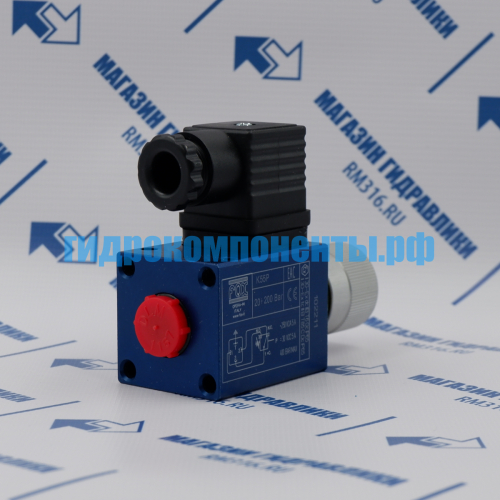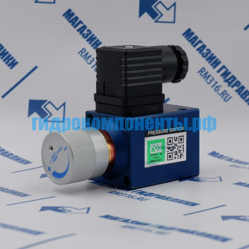 K55P Настраиваемое реле давления, диапазон регулировки 20-200 бар, макс. рабочее давление 400 бар (Fox, Италия). Реле давления — это устройство, которое реагирует на изменение давления в гидросистеме и включает или отключает электрическую цепь при достижении заданного значения.