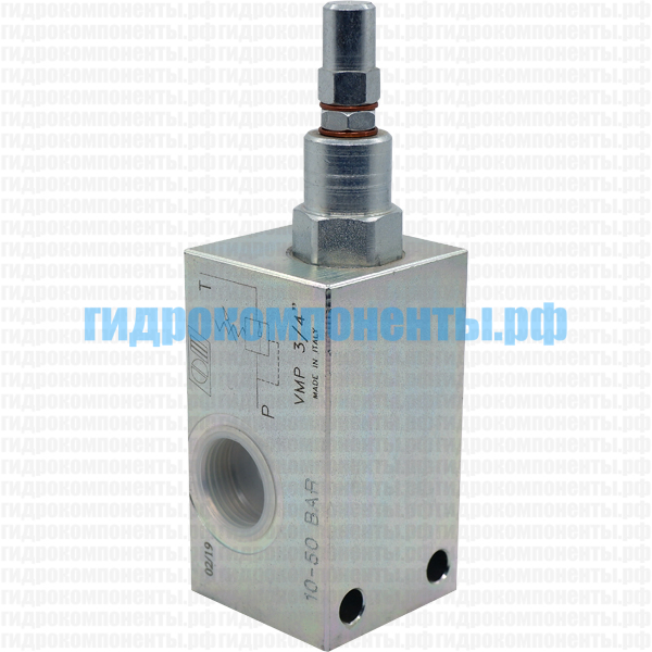 Предохранительный гидроклапан VMP 3/8" (V0700/300) обеспечивает защиту от перегрузки гидросистемы. Когда давление в системе достигает давления настройки, гидравлический клапан VMP 3/8" (V0700/300) открывается, направляя поток рабочей жидкости на слив в маслобак. Гидроклапан VMP 3/8" (V0700/300) производства Oleodinamica Marchesini (Италия).