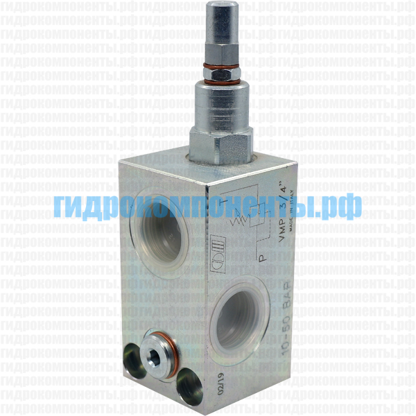 Предохранительный гидроклапан VMP 3/8" (V0700/50) обеспечивает защиту от перегрузки гидросистемы. Когда давление в системе достигает давления настройки, гидравлический клапан VMP 3/8" (V0700/50) открывается, направляя поток рабочей жидкости на слив в маслобак. Гидроклапан VMP 3/8" (V0700/50) производства Oleodinamica Marchesini (Италия).