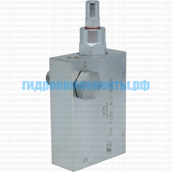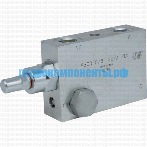 VBCD 3/8" SE/A FLV (V0392/FLV) Односторонний тормозной (контрбалансный, уравновешивающий) клапан гидравлический (гидроклапан) с корпусом (сталь), 3/8" BSP, 40 л/мин, 350 бар, 4,5:1, монтаж на банджо-болт, диапазон регулировки 100-350 бар (Oleodinamica Marchesini, Италия). Тормозной клапан (клапан торможения) используется для обеспечения плавности работы гидродвигателей (например, гидроцилиндра или гидромотора), а также выполняет функцию гидрозамка. Уравновешивающий клапан V0392/FLV помогает избавиться от рывков и колебаний при действии попутных нагрузок, вектор движения которых совпадает с направлением движения гидроцилиндра или гидромотора. Купить подпорно-тормозные клапаны Oleodinamica Marchesini можно в нашем магазине гидравлики в Санкт-Петербурге. Доставка гидравлических комплектующих Oleodinamica Marchesini осуществляется транспортными компаниями по всей России.