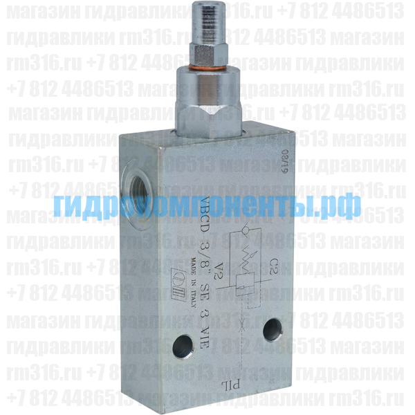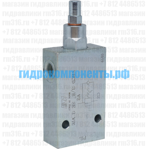 VBCD SE 3 VIA (V0394) Односторонний тормозной (контрбалансный, уравновешивающий) клапан гидравлический (гидроклапан) с корпусом (сталь), 3/8" BSP, 40 л/мин, 350 бар, 4,5:1, трубный монтаж, диапазон регулировки 100-350 бар (Oleodinamica Marchesini, Италия). Тормозной клапан (клапан торможения) используется для обеспечения плавности работы гидродвигателей (например, гидроцилиндра или гидромотора), а также выполняет функцию гидрозамка. Уравновешивающий клапан V0394 помогает избавиться от рывков и колебаний при действии попутных нагрузок, вектор движения которых совпадает с направлением движения гидроцилиндра или гидромотора. Купить подпорно-тормозные клапаны Oleodinamica Marchesini можно в нашем магазине гидравлики в Санкт-Петербурге. Доставка гидравлических комплектующих Oleodinamica Marchesini осуществляется транспортными компаниями по всей России.