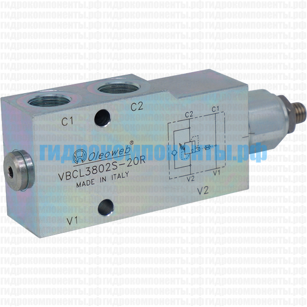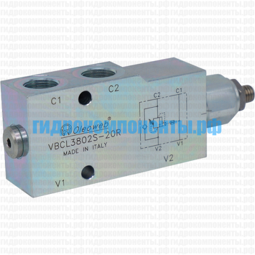 VBCL3802S Односторонний тормозной (контрбалансный, уравновешивающий) клапан гидравлический (гидроклапан) с корпусом (сталь), 3/8" BSP, 40 л/мин, 350 бар, 4,25:1, трубный монтаж, диапазон регулировки 60-350 бар (Oleoweb, Италия). Тормозной клапан (клапан торможения) используется для обеспечения плавности работы гидродвигателей (например, гидроцилиндра или гидромотора), а также выполняет функцию гидрозамка. Уравновешивающий клапан VBCL3802S помогает избавиться от рывков и колебаний при действии попутных нагрузок, вектор движения которых совпадает с направлением движения гидроцилиндра или гидромотора. Купить подпорно-тормозные клапаны Oleoweb можно в нашем магазине гидравлики в Санкт-Петербурге. Доставка гидравлических комплектующих Oleoweb осуществляется транспортными компаниями по всей России.